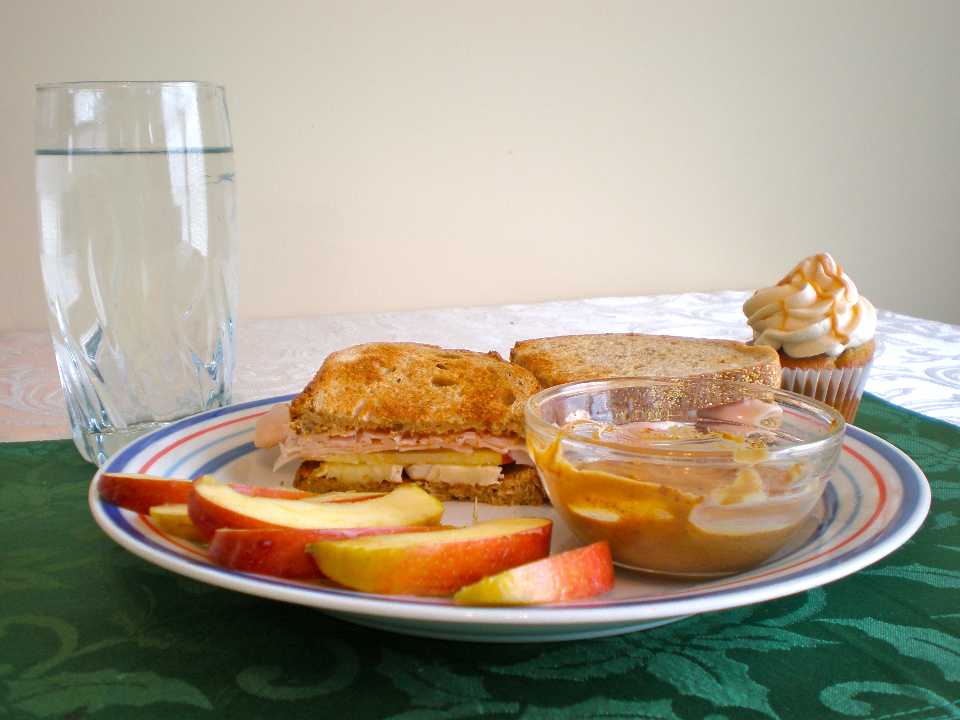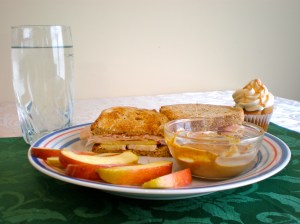 Second, I’ve varied the fruit. I actually prefer using apples instead of pears, because the pear is so squishy when it’s properly ripe. Honeycrisp is my favorite brand of apple so far for this sandwich. I tried Braeburn, but it was a bit too soft. I might try Pink Lady’s next week, since they have the required crispness and sweetness. I have a thing with texture, if you can’t tell.